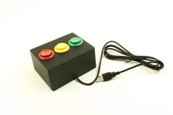When you order please choose the button colors you want, indicating left button (red, green, yellow, orange, pink, blue), middle button (red, green, yellow, orange, pink, blue) and right button (red, green, yellow, orange, pink, blue) as well as what keys or key combinations you want pressed or what MIDI notes you want to use. (Or we can choose for you.)