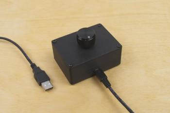 This is a custom USB controller which features a rotary dial that can be used for scrolling, volume control, or other input. The knob can be pressed to simulate a mouse click, key press, or send a key combination. The knob spins “forever” meaning it does not have a hard stop in either direction (just like a mouse scroll wheel). It has detents for precise control, allowing you to move one “step” at a time.