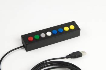 The 8K2 Controller a custom USB MIDI device with 8 buttons and a 10 foot long USB cable.